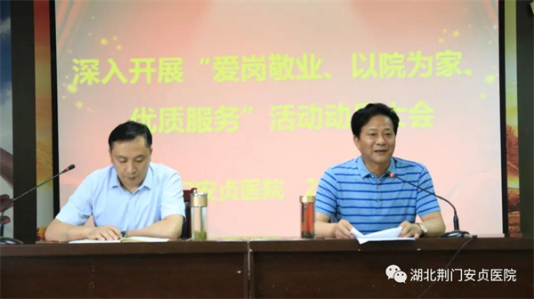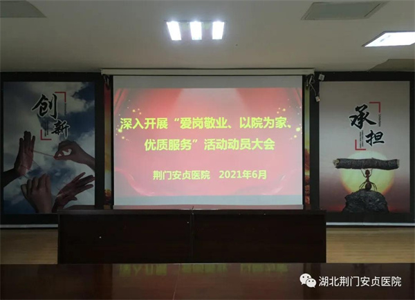 在这夏花娇艳的美好时节,欢庆中国共产党百年华诞之际,6月17日下午,荆门安祯医院召开了深入开展以“爱岗敬业、以院为家、优质服务”为主题活动的全院动员大会,向党的100周年献礼