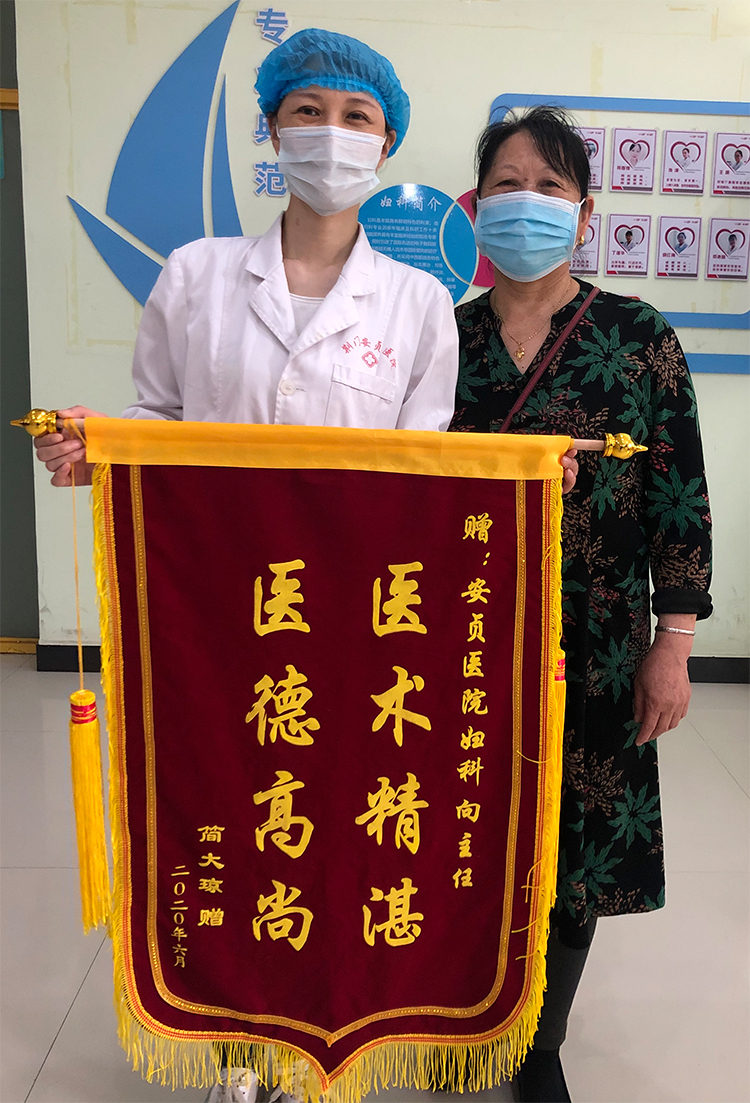 2020年6月10日,妇科向莉华主任收到患者简大琼赠送的锦旗一枚,以感谢向主任及全体医护人员对其精心的诊断和治疗。