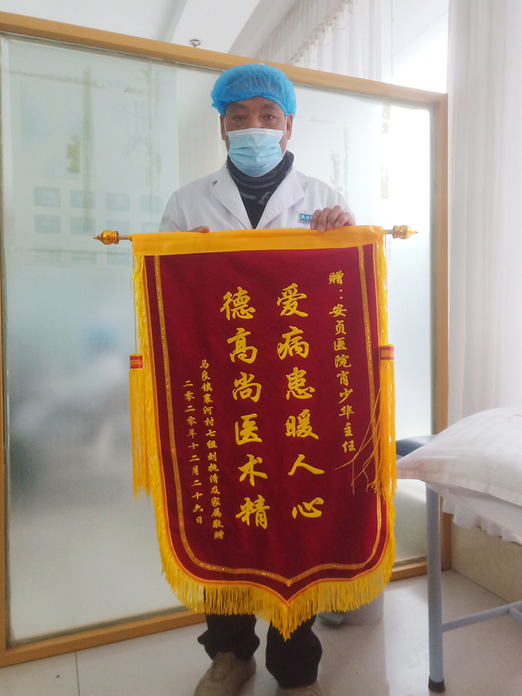 2020年12月28日,外科肖少华主任收到患者刘执清赠送的锦旗一枚,以感谢肖主任及全体医护人员对其精心的诊断和治疗。